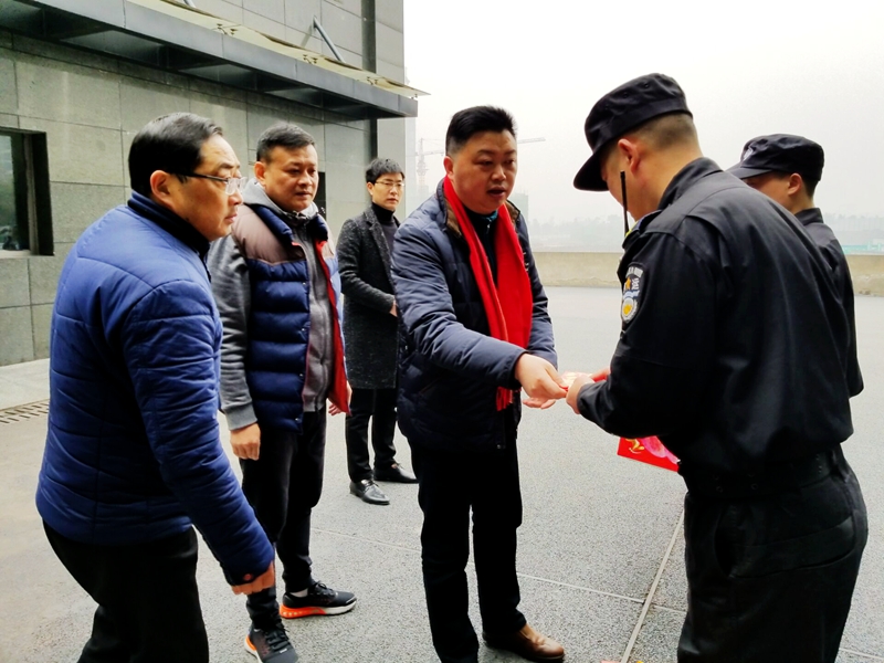 每到一个慰问点,公司党政领导对春节期间肩负金融、安全保障任务,不能与家人团聚的一线执勤员工嘘寒问暖,主动询问员工及家人的工作生活情况并致以新春佳节的问候和祝福,同时希望大家不负重托,不辱使命,努力为全市人民提供更安全、更高效的安防保障服务。