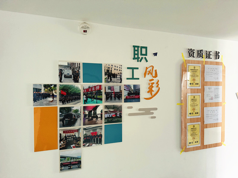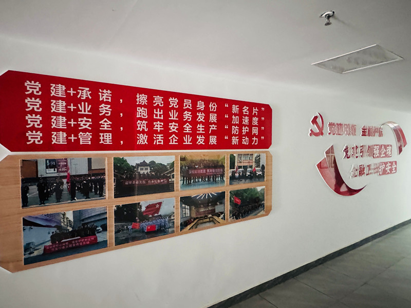 党建文化长廊位于公司一楼,环四周墙壁而建秉持“安全、忠诚、专业、规范”经营理念,通过精心设计和布置,以公司发展历程、员工风采、廉政文化、党建品牌等版块为载体,集中展示了公司的历年发展历程和企业文化旨在引导员工增强政治自觉和职业荣誉感、使命感。