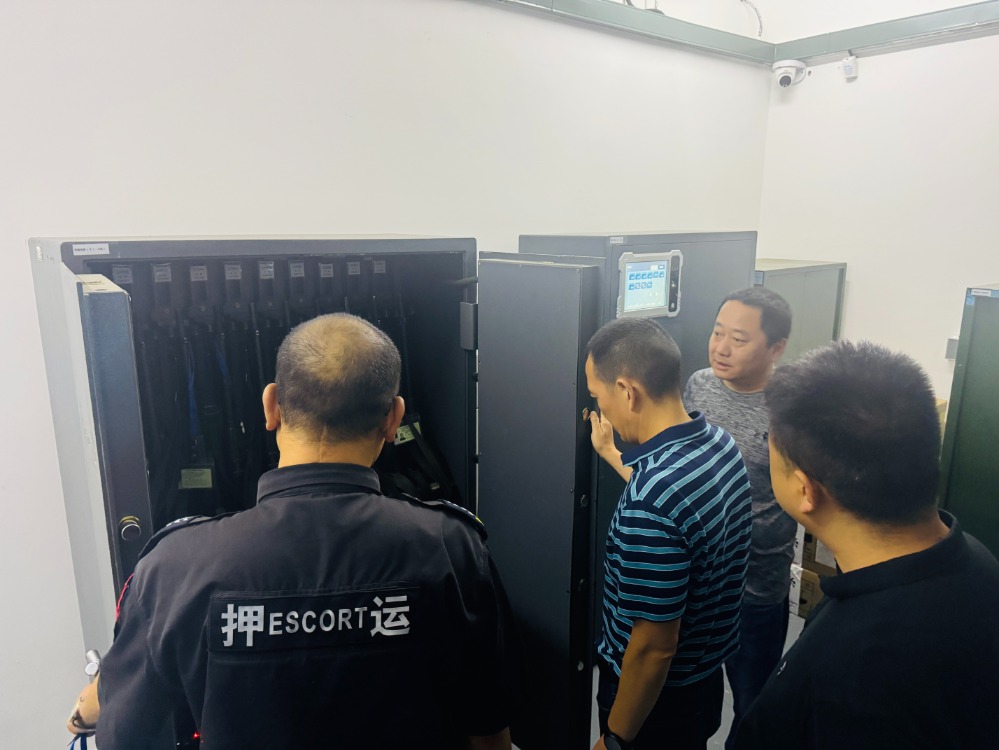 李德强一行深入现金处理中心关键区域,重点对枪支弹药管理、押运勤务运行、安全防范措施等方面进行了全面细致的检查。在枪弹室,检查组详细了解枪弹安全管理工作情况以及日常领取流程。随后,在调度指挥中心,李德强随机调取了正在高速路段执行押运任务车辆的实时监控画面,询问勤务运行情况及安全措施落实情况。他强调,要持续加大科技投入,充分运用科技手段,提升押运过程的动态监管能力,切实筑牢安全屏障。