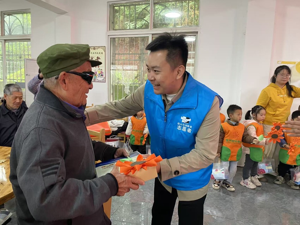 活动当天,保升镇敬老院一片喜气洋洋。四川金辉保安公司总经理蒋金峰带领志愿者早早来到敬老院,保升阳光幼儿园的小朋友们也穿着整齐的服装,带着精心准备的节目,兴高采烈地参与其中。