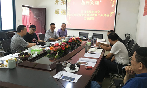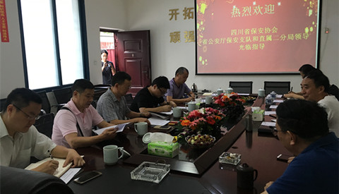 本网讯(张娓静)2017年9月12日,四川省保安协会副会长王冰、秘书长何辉元、副秘书长罗远富、省公安厅治安总队保安支队长白马仁真、四川省公安厅直属二分局局长刘进、副局长黄小国一行前往四川天虎保安服务有限公司,就党的十九大召开前的“四川保安在行动”及有关十九大和国庆期间的安保工作进行了调研。听取了天虎保安服务有限公司对安保工作的专题工作汇报,检查了有关安保工作预案及安保监控、安保工作采取的措施、方案。并对有关问题提出了意见和建议。