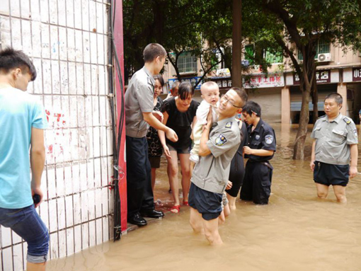 23日6时许,长江水位涨至18米,滨江路1、2楼住户和商铺已被淹没,泸州市防汛指挥部启动Ⅰ级应急响应,市公安局指令保安服务公司全力投入抗洪抢险。灾情就是命令,时间就是生命,公司接到市公安局指令后,迅速调集100余名员工分为4个抢险救援组,分别由公司相关部门领导带队,分赴龙马潭区小市和江阳区滨江路等抗洪抢险一线。部分员工家中被洪水淹没受灾的情况下,但他们却舍小家,顾大家,义无反顾地赶赴救灾第一线。守押六中队副中队长李川东,其父亲脑出血正在医院抢救、爱人生小孩坐月子,公司考虑到他的特殊情况,没安排他参加抗洪抢险,当他知道公司抗洪抢险人员紧缺时,将父亲和爱人交给家人照看,第一时间赶到公司参加抗洪抢险任务,并协助公安民警、消防官兵从洪水中救出群众10人,帮助群众转移物品价值数万元。守押部业务经理张小南、守押二中队员工帅强家中受灾,父母被困家中,公司叫他们回家救援,但他们说,现在是全市同心协力渡难关的关键时候,我怎能只顾小家呢,坚持参加抗洪抢险。在抢险现场,有的员工带病坚持在抗洪一线,有的冒着生命危险救助群众,守押三中队叶明君右小腿骨折手术后刚出院不久,走路都比较困难,但他仍然坚守在抗洪抢险一线,群众看到后都说,保安是好样的。守押一中队谢雷多次冒着被洪水卷走的危险,不顾公司领导的劝说,来回往返于洪水中救助被围困的群众。