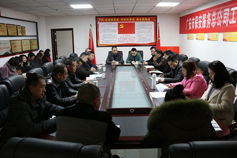 本网讯(通讯员 宋小清 周妤铮)2018年1月18日上午,广安市保安服务总公司工会委员会2017年工作总结会在总公司会议室召开。工会副主席宋小清主持会议,工会委员、工会小组长、工会会员代表参加会议,工会主席文继红作总结报告,公司党支部书记、总经理刘德军出席会议并作重要讲话。
