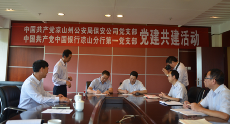 签字仪式前,凉山州公安局保安公司党支部与中行凉山分行第一党支部就党建结对共建活动的目的、意义进行了座谈,明确了“通过党建结对,加强党建合作,助推业务发展”的理念,双方一致认为充分发挥基层党组织的战斗堡垒作用是结对共建的出发点和落脚点。