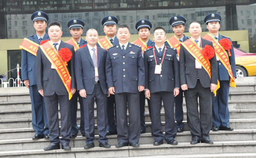 本网讯(罗森)10月18日上午,公安部、全国总工会、共青团中央在北京召开第四届全国先进保安服务公司和先进保安员表彰大会。会前,中共中央政治局委员、中央政法委书记孟建柱会见全体与会人员,并与受表彰代表座谈。国务委员、公安部部长郭声琨出席会议并讲话。厅党委委员、政治部主任胡钢率厅治安总队总队长陈忠、省保安协会相关负责同志,以及我省受表彰的企业代表、保安员参加了表彰大会。